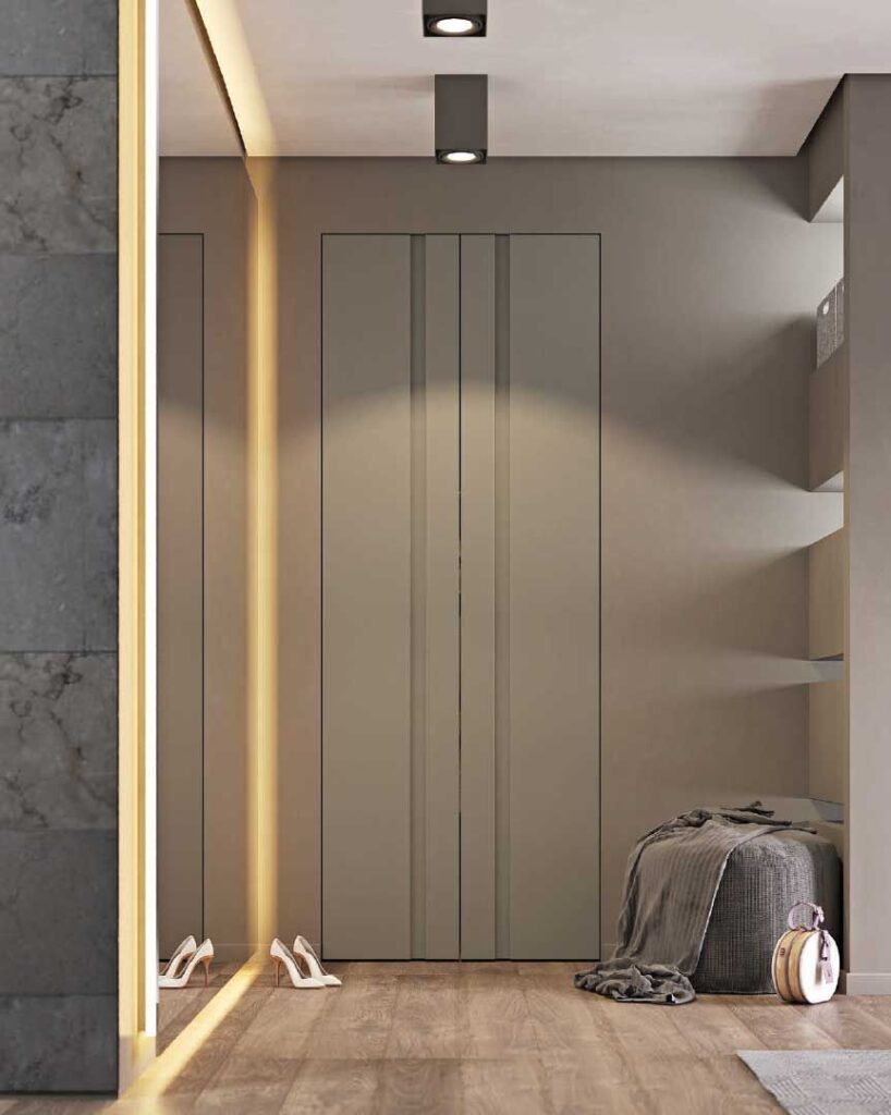 LINEA LISCIO LACCATO: porta ideata per cabine armadio con una comoda maniglia all’interno dell’anta, che combina eleganza e funzionalità in ambienti di design.
